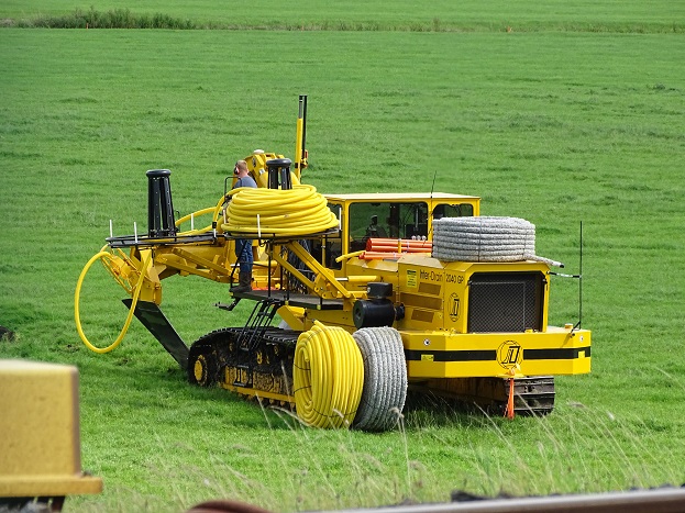 Onder de opgang van de Walfridusbrug, maar dan aan de andere kant van het spoor was een sleuvengraver doende, waarschijnlijk voor drainage van het daar inderdaad nogal drassige land: