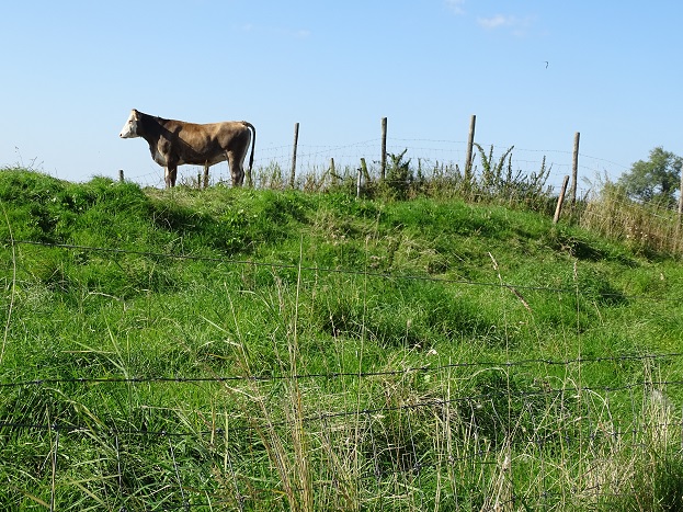 Koe in de namiddagzon, voorbij Kommerzijl nabij Pama:
