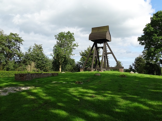 Vanaf de achterkant – de contouren van kerk en toren zijn met stenen in het gras gemarkeerd. Ben hier ook eens aangevallen door een ram, maar zo te zien was er geen beweiding meer: