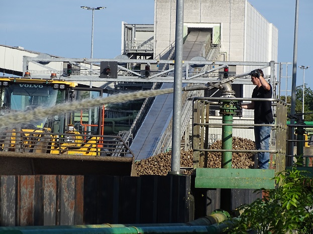 Suikerfabriek Hoogkerk – jongeman bespuit bieten met een soort waterkanon: