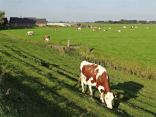 Dijkzicht op grazige weide tussen Hekkum en Wierumerschouw: