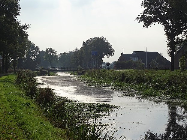 Het Leekster Hoofddiep bij de Roomsterweg, half dichtgegroeid met waternavel: