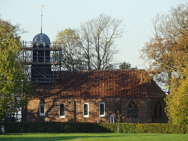 En langs Fransum, waar de toren op de kerk in de steigers stond: