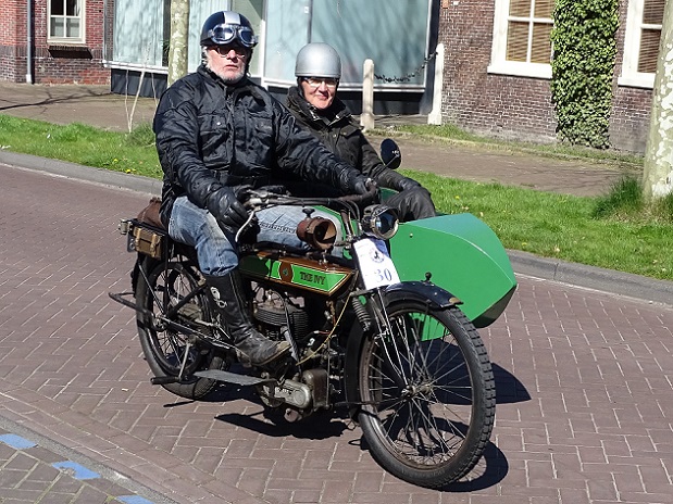 In Nietap kwamen tientallen antieke motoren voorbij, waaronder dit zijspan: