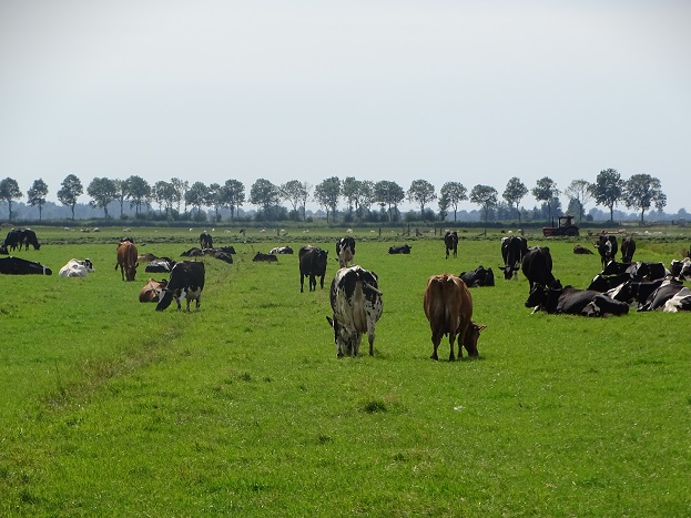 Op de oever van het Aduarderdiep stond een oud trekkertje. Eerst dacht ik: die is gedumpt, maar aan de achterkant bleek een buis te zitten, waardoor er water uit het kanaal gepompt werd, dat waarschijnlijk vanwege de drooogte naar de sloot aan de andere kant van de weg gaat: