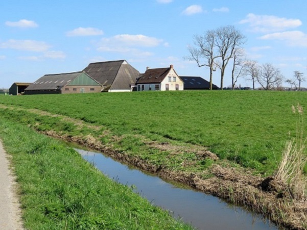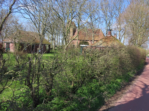 Kleiwerd, waar linksachter onlangs een hele rij populieren de boomkronen is kwijtgeraakt: