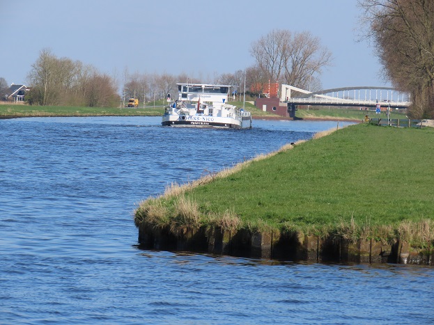 De Hans-Nico, een tanker uit Zwartsluis, nadert de Dorkwerderbrug:
