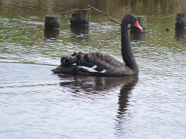 Zwarte zwaan op het Aduarderdiep bij Bolshuizen: