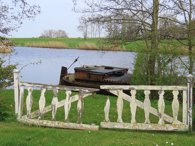 Wegrottend hek bij krottig schip, Aduarderzijl: