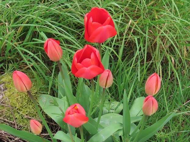 R, had vorig jaar drie tulpen op dit plekje in haar Ezinger toentje staan. Dit jaar zijn het er negen. En dat zonder enige bestrijdingsmiddelen. Tot zover onze mededelingen voor land- en tuinbouw: