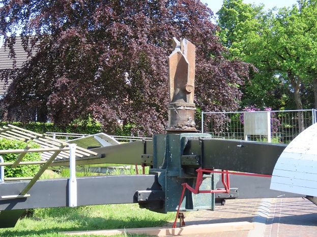Terug langs Noordhorn om de molen te zien. Zaterdag brak de molenas af, waardoor het wiekenkruis er door een kraan afgehaald moest worden. Dat wiekenstel lag gister eind van de middag nog op straat: