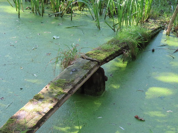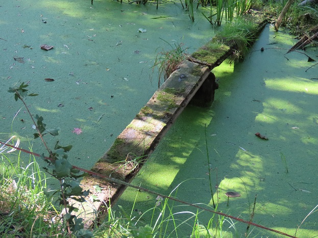 De sloot langs de Hooiweg nabij het Matslootgemaaltje slibt ook dit najaar weer dicht met waternavel: