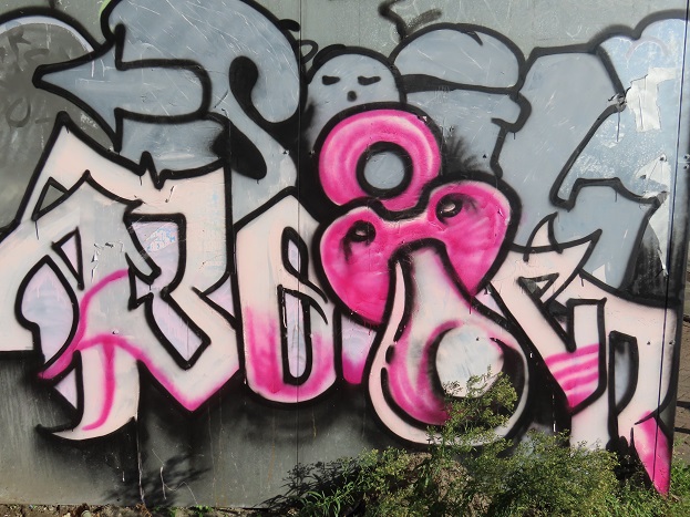 In het westelijk deel van het gebied beginnen de vrijwillige graffiti te domineren met een toeterende fopspeen::