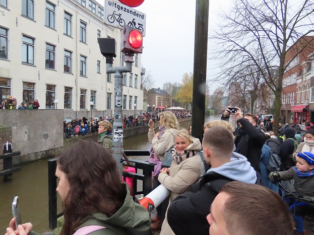 Had de intocht van de Goedheiligman in geen dertig jaar gezien en meegemaaakt, maar had bij de A-brug op het nauwst van de A meteen een eersterangs plekje waar gelukkig noch geduwd, noch voorgedrongen werd: