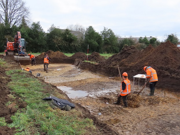Het opgravingvlak op her binnenterrein dichtbij de boerderij: