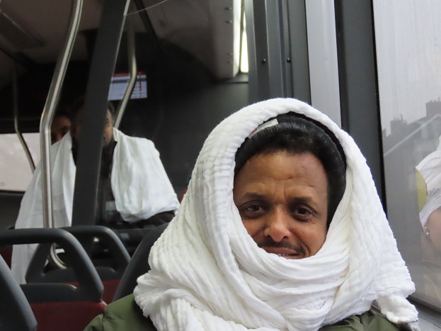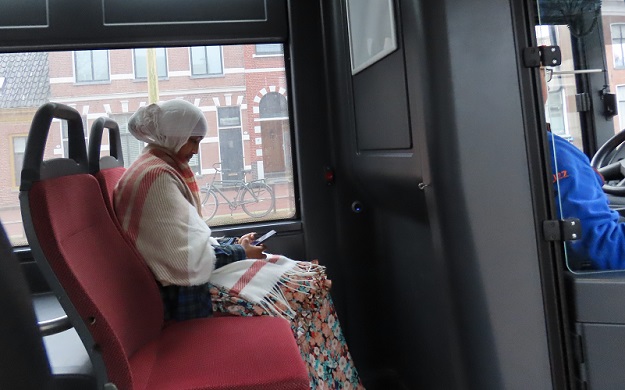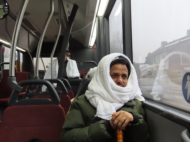Bij het instappen in de bus, vlakbij huis, zaten er al allemaal Eritrese kerkgangers in, die kennelijk via de omweg langs het Transferium oftewel P+R Hoogkerk in Hoogkerk gekomen waren. De witte hoofddeksels moeten iets met hun waarschijnlijk orthodoxe viering op deze zondag te maken hebben gehad: