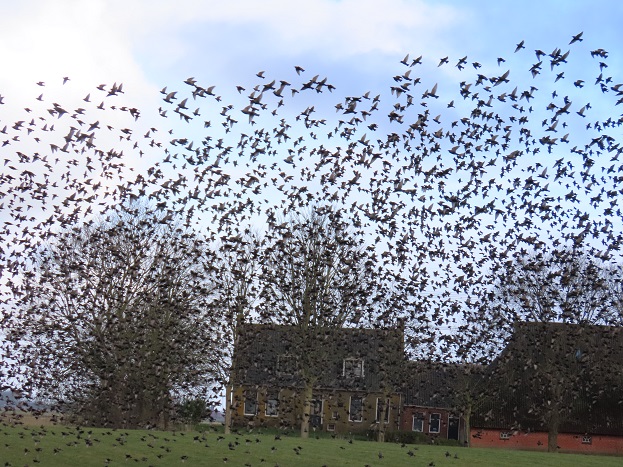 De vele strontkarren lokken nog veel meer strontvliegen die weer zwermen spreeuwen verlokken: