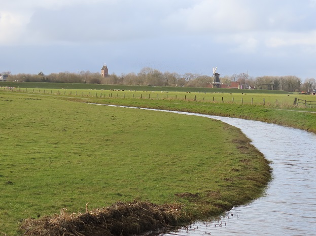 Over de dijk langs het Reitdiep bij Wierumerschouw: