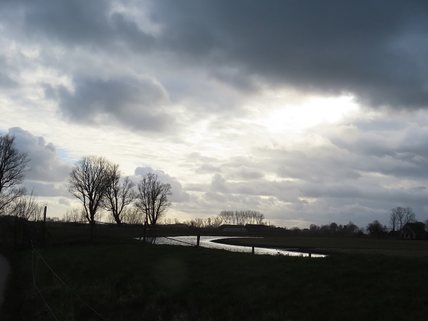De spreeuwen vormden intussen een povere vervanging voor de uitblijvende kieviten en grutto’s, Wat dat betreft waren we in de buurt van Hekkum wel eens gastvrijer ontvangen. Ik heb meen ik maar één kievit horen jubelen onderweg. Een voorlente is inderdaad nog niet het echte werk.