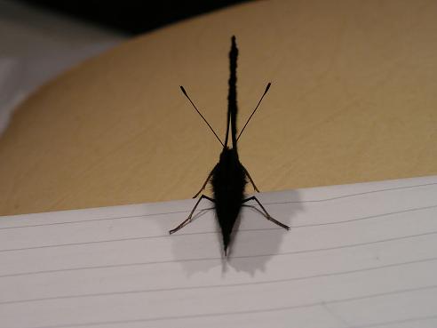 Ik manipuleerde hem op een dichtbij liggend blaadje schrijfpapier, maar dat gaf niet de verhoopte betere foto: