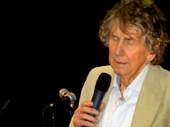 De organisator nu eens van de voorkant, met aan zijn zijde Aafke Steenhuis, de winnares van de Klaas ter Laanprijs (juryrapport)