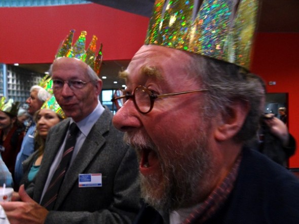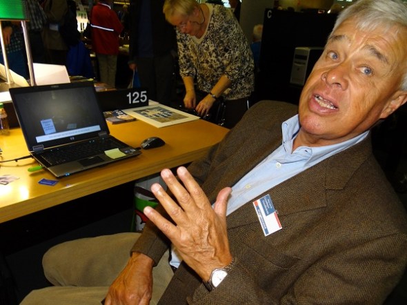 Een enthousiast deelnemer aan de Groninger Geschiedenis Quiz. Hij werd tweede, na oud-Nieuwsbladcorrector Renkema: