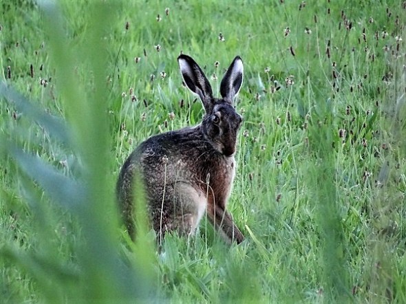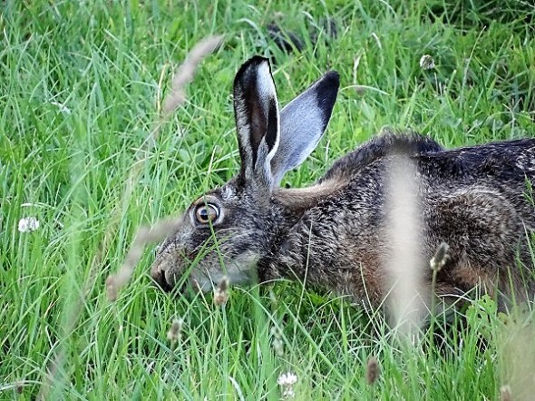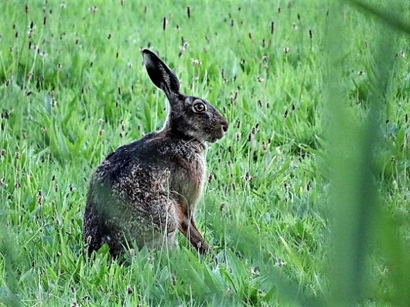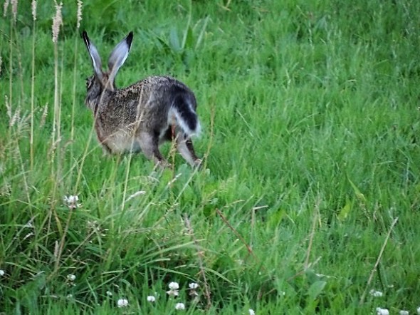 (Vort met dat liedje.) De ene haas ging er vandoor, en de ander – het mannetje? – bleef over en liet zich zelfs van nog wat dichterbij kieken: