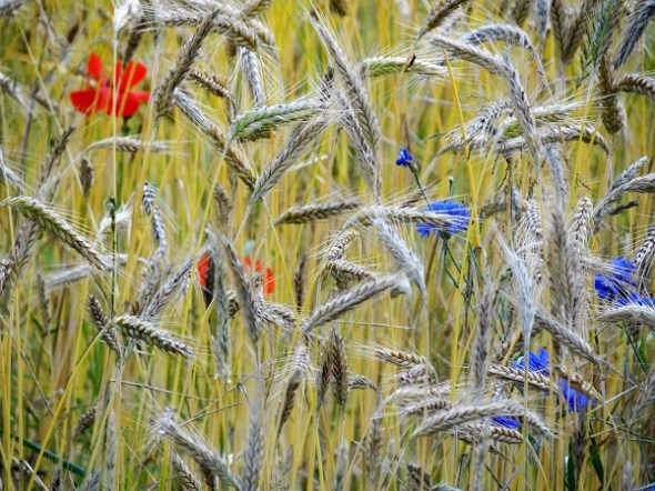Rijpende rogge met korenbloemen en klaprozen op de Stenhorsten: