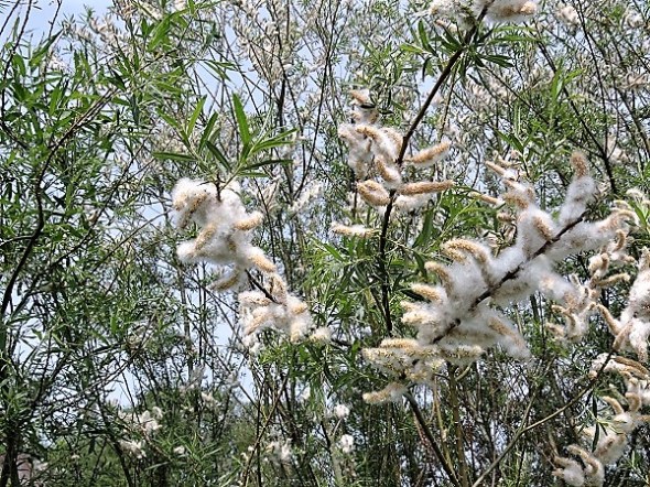 Wilg met spinselmotten, dacht ik eerst, maar een lezer wees me erop dat het rijp wilgenzaad is: