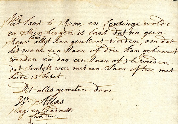 Notitie uit 1745 van de beëdigde landmeter W. Atlas uit Roden, dat het bouwland in Roden, Leutingewolde en Steenbergen niet altijd als volwaardig te beschouwen viel, omdat veel akkers maar een jaar of drie bebouwing verdroegen. Na die drie jaren moesten ze een jaar of vijf braak liggen en kon er hooguit wat vee worden geweid. Na afloop van deze cyclus was het land soms na twee jaar alweer met heide begroeid. Daarom diende er volgens hem ook een kortingsregeling te komen bij de heffing van de grondschatting.