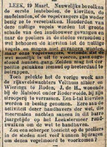 Politienieuwtje, Nieuwsblad van het Noorden 21 maart 1901, dus tien maanden later: