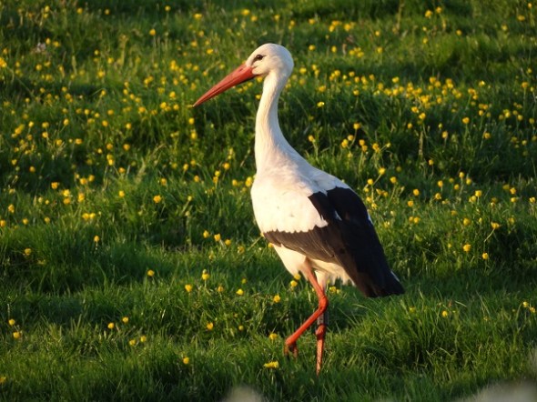 Onlanden bij Roderwolde – het laatste uur voor een kikker, de ooievaar heeft hem bij de poot: