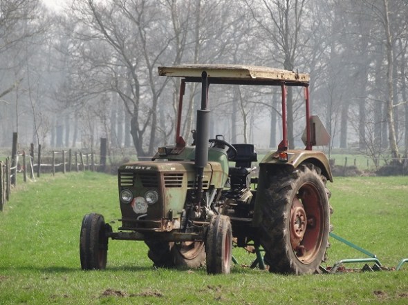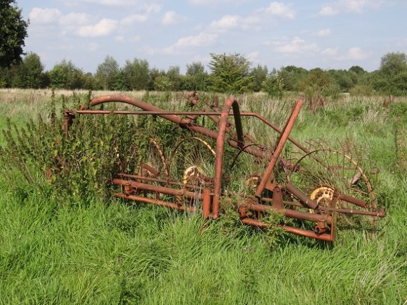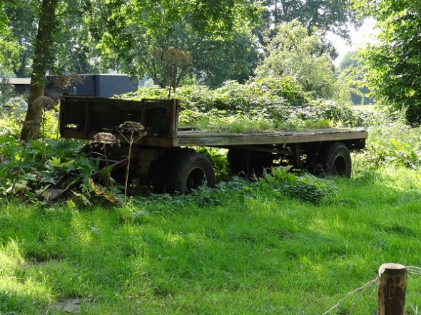 Langmadijk bij het gehucht Peizermade – afgedankte wagen (voor het vervoer van boomstammen?) in het riet: