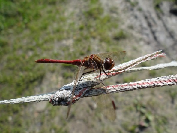 Eelde, Molenweg – bloedrode heidelibel op schrikdraad: