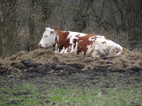 Ontsnapt blaarkopkalf snapt niet waar ik mij mee bemoei. Boer vroeg om assistentie bij het weer insluiten van het beest. Ja, men maakt wat mee in Leegkerk: