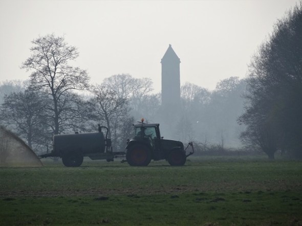 Boer giert (natuur)weiland bij Lettelbert. De toren in de verte is die van Midwolde: