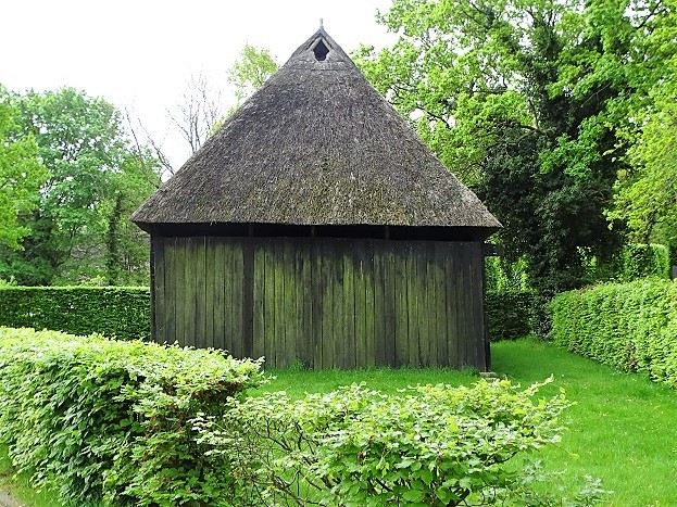 De boerderij van Natuurmonumenten bij Eelde heeft weer een beste voorraad nieuw hooi (terwijl er ook nog verscheidene rollen van vorig jaar staan, die nu met gras overwoekerd raken):
