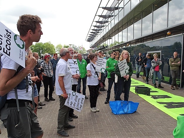 De opkomst was op dit vroege uur nog bescheiden: 50 à 75 mensen, schat ik, met, gezien de jasjes en shirts, veel leden van Dierenpartij en GroenLinks:.