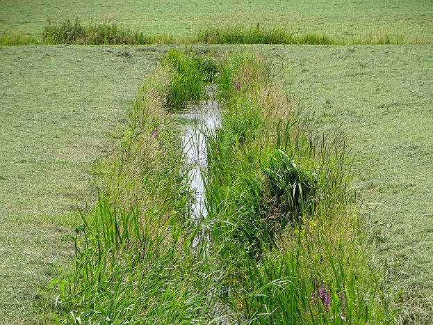 Ruig slootje in pasgemaaid hooiland, Roderwolde: