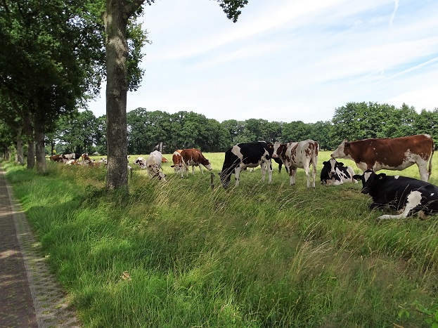Aan de andere kant van de Hooiweg zochten de koeien de schaduw al op (ca, 2 uur):