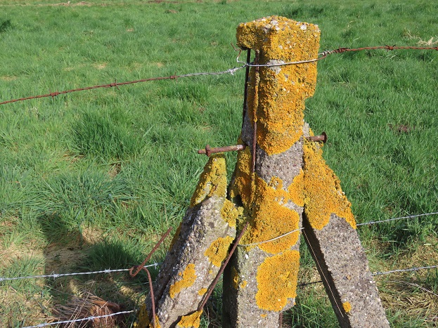 Bij de A7 ter hoogte van Haren-Zuid staat dit vervallend stuk afrastering van gewapend beton uit de jaren vijftig, mooi vanwege de korstmos: