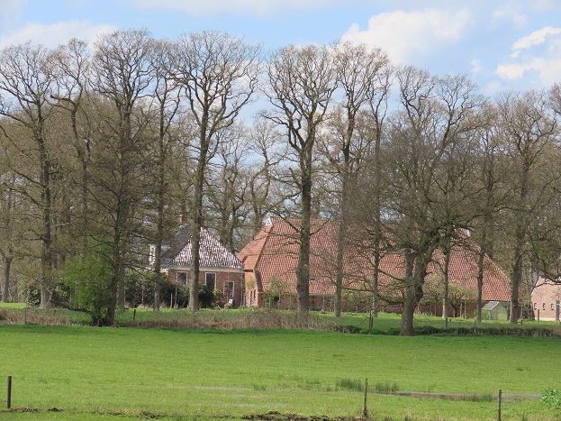 De Waalborg bij Roderwolde voor een moment of wat mooi uitgelicht. Je kunt van deze kant ook goed zien dat het voorhuis en het voorste deel van de schuur op een podium staan: