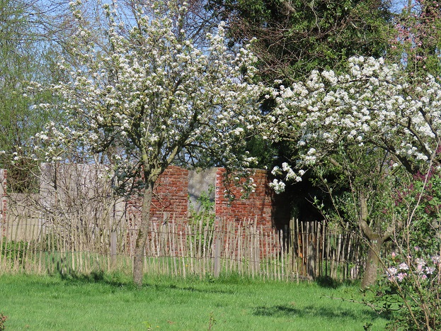 Aan de voorkant is enig geboomte verwijderd, zodat je er nu vrij zicht op hebt – aan deze zuidoostkant uit de westen- en noordenwind zou een kleine wijngaard het ook wel goed doen (Chateau Waalborg):