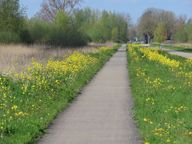 De Hooiweg tussen Roderwolde en Matsloot raakt al aardig omzoomd door raapzaad:
