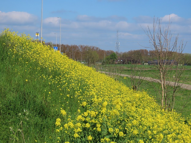 De talud van het viaduct bij de Matsloot kleurt al helemaal geel: