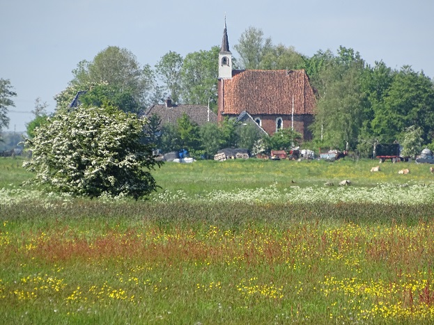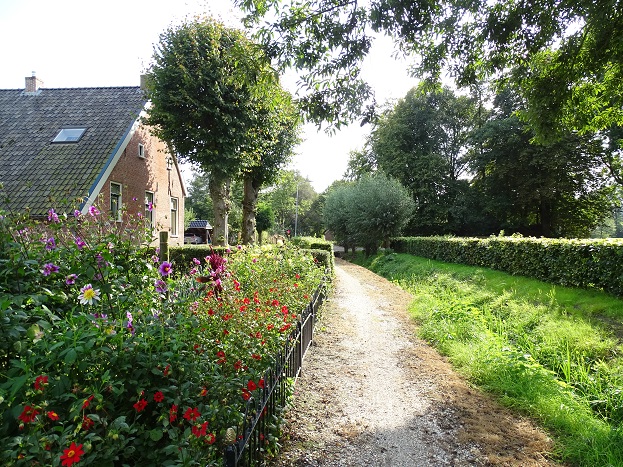 Bij de romaanse kerk van van Olderberkoop stikte het helaas van de fietsen – er was kennelijk een of andere festiviteit aan de gang. Dan maar direct op de fiets terug. Aan de Grindweg bij Nijeberkoop deze Sint Maarten (tenminste, daar hou ik hem voor, al ontbreekt de bedelaar):
