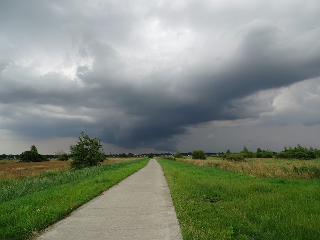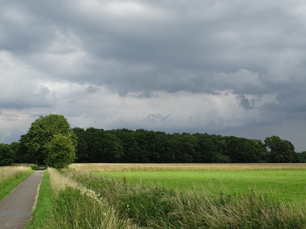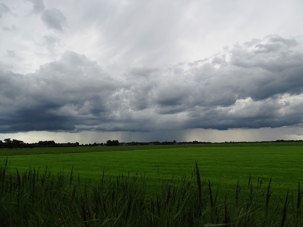 Vanaf de Weringsedijk viel te zien dat de bui over het zuidoosten van de Stad wegdreef. Helaas geen zon meer achter mijn rug::