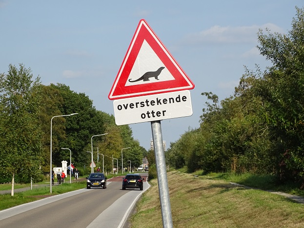 Bord langs de Meerweg waarschuwt voor overstekende otters: