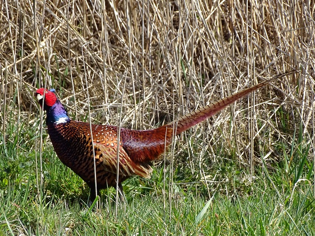 Geplaatst op: 16 april 2022 Hoort bij: Drenthe 6 reactiesFazantenhaan bij de Weringsedijk in de Onlanden: