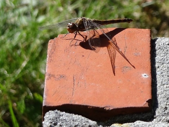 Libelle rust even uit van het jagen op hoek grafmonument: